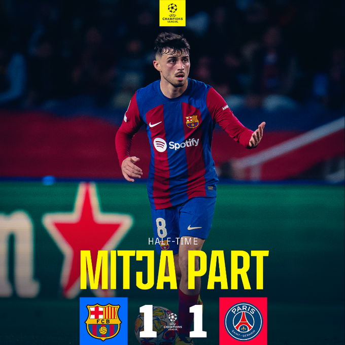 Sędzia István Kovács zakończył pierwszą połowę na Estadi Olímpic Lluís Companys na wzgórzu Montjuïc w Barcelonie. Po pierwszych czterdziestu pięciu minutach, jak na razie, mamy remis po jeden. Jak będzie po przerwie? Przekonajmy się.